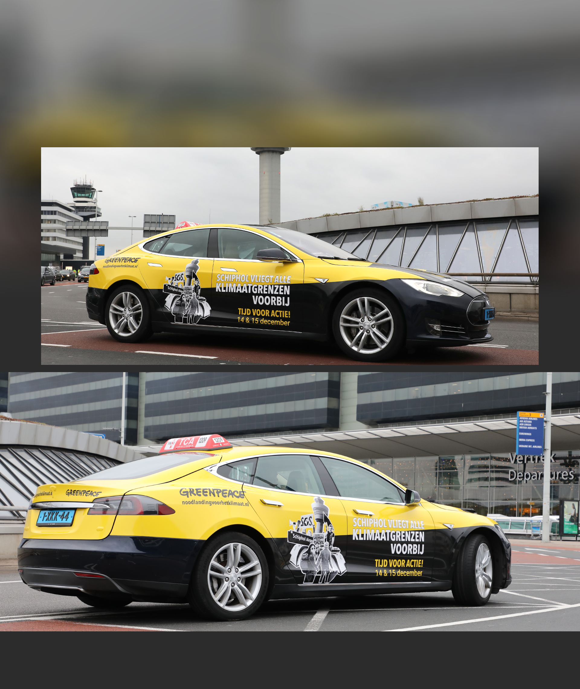 Voor Greenpeace heb ik een mooi ontwerp voor een taxi mogen maken. De taxi heeft een aantal dagen rond schiphol rondgereden. Deze actie had te maken met een actie van Greenpeace.